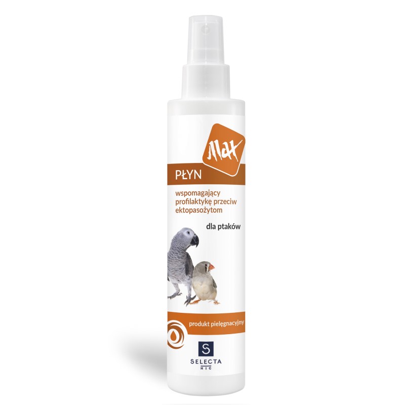 Płyn przeciw ektopasożytom dla ptaków MAX opracowany jest z myślą o pielęgnacji i kosmetyce pupili. Profilaktyka i odstraszanie pasożytów zewnętrznych, owadów takich jak: pchły, komary, meszki są dodatkowymi funkcjami produktu. Do stosowania u młodych zwierząt od 5 miesiąca życia, osłabionych lub delikatnych zwierząt dorosłych MAX Płyn pomaga zabezpieczać miejsca bytowania zwierząt (np. klatki, legowiska) przed inwazją ektopasożytów i owadów.